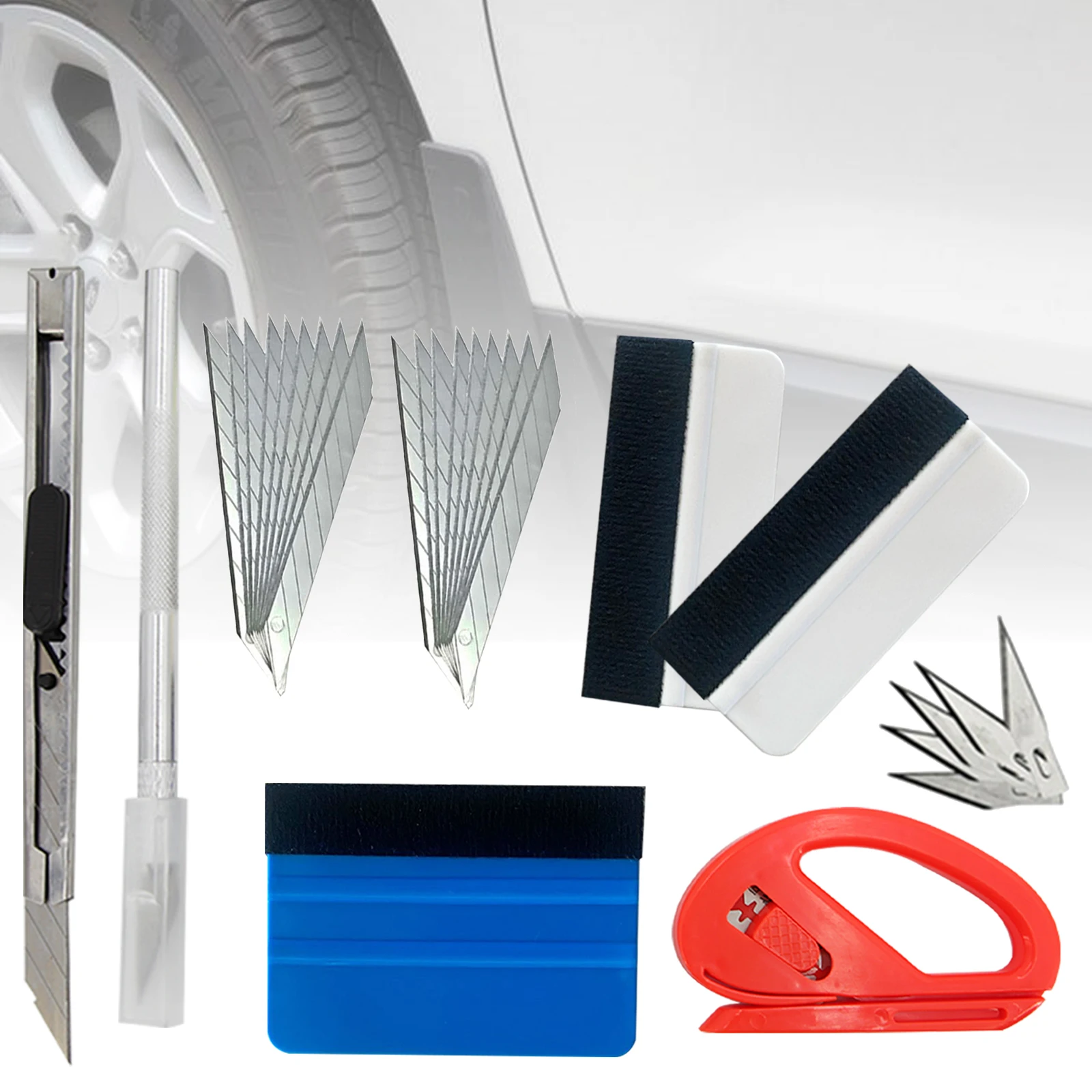 7 Pcs Car Vinyl Tint Film Wrapping Felt Squeegee Cutter Installing Tool Kit Auto Sticker Glass Protective Felt Squeegee Scraper