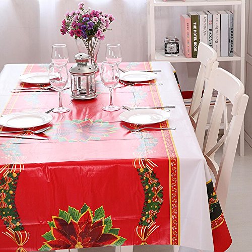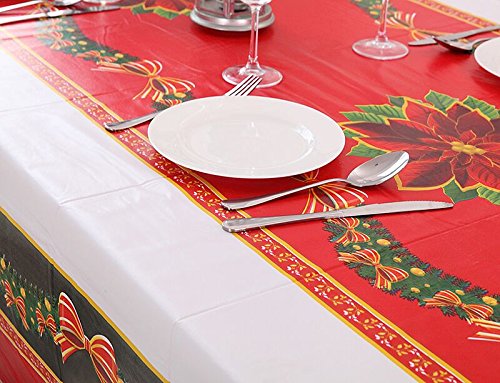 Vinylla - Tovaglia natalizia in tela cerata/PVC, antimacchia, con poinsezia e vischio