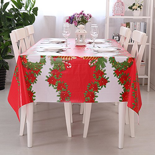 Vinylla - Tovaglia natalizia in tela cerata/PVC, antimacchia, con poinsezia e vischio