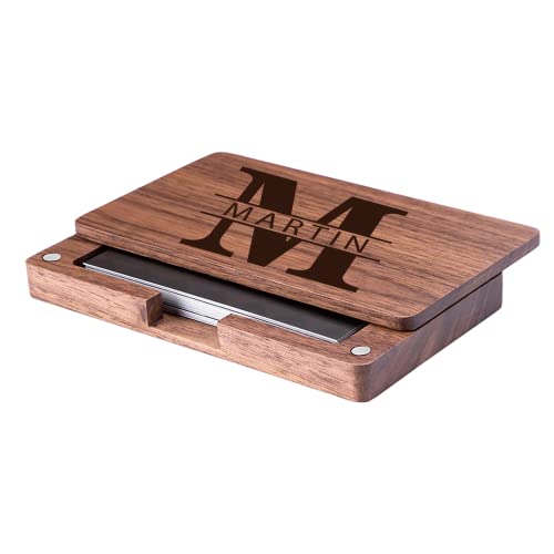 Porta biglietti da visita in legno con nome personalizzato Porta biglietti da visita in noce nero personalizzato speciale, 2,7 * 4,7 pollici