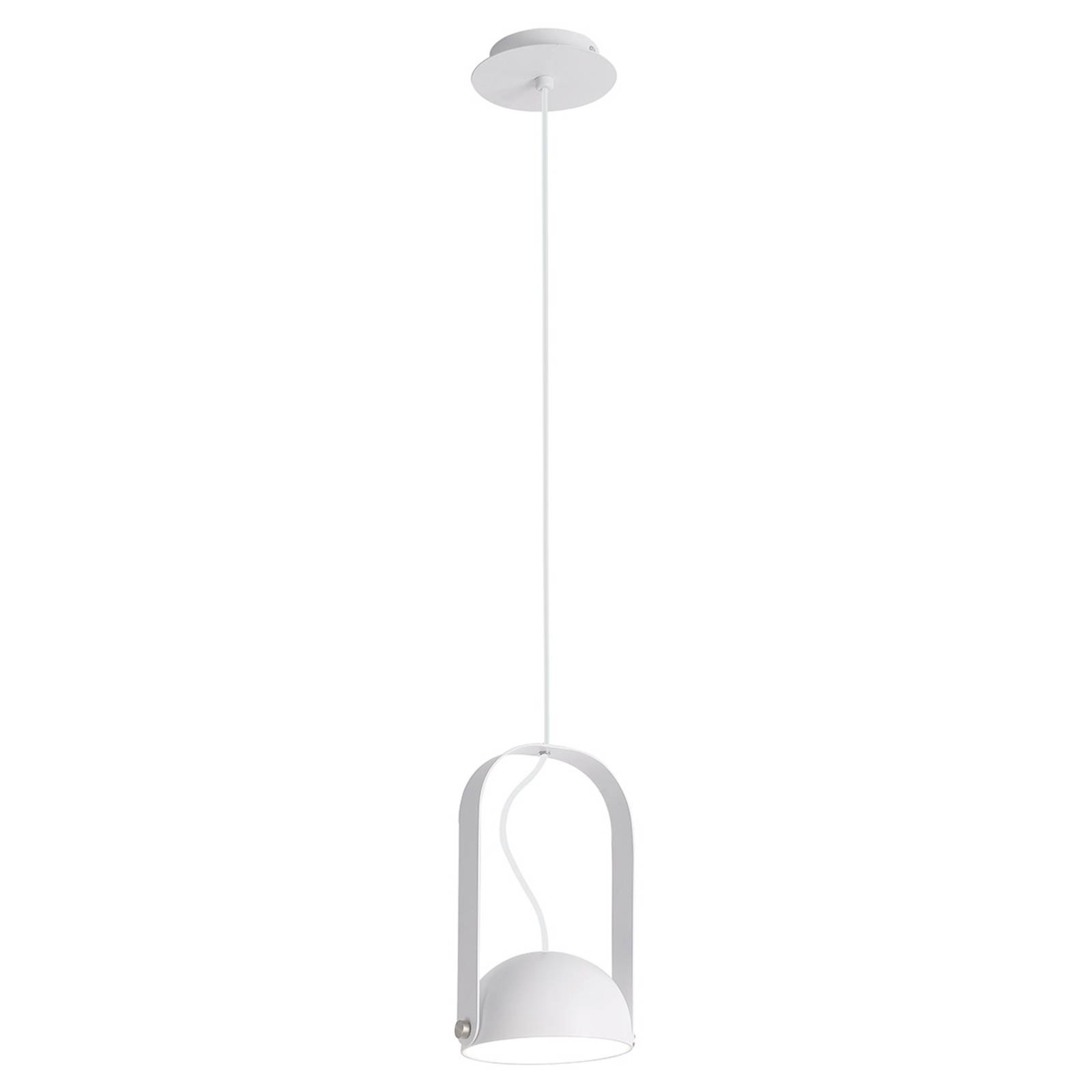 Lampada a sospensione orientabile a LED Hemi con tocco industriale Hemi è un moderno apparecchio a sospensione a LED con testa della lampada orientabile, che viene tenuta come una semisfera da una staffa metallica. Il cavo di alimentazione passa attraverso la staffa fino alla calotta rotonda del soffitto. I LED installati nel paralume irradiano una luce bianca calda verso il basso, che può anche essere allineata individualmente grazie alle caratteristiche di rotazione del paralume. L'apparecchio Hemi è molto moderno con le sue chiare forme geometriche e le viti a vista gli conferiscono un aspetto industriale. Hemi è ideale per l'illuminazione sopra il tavolo da pranzo nella zona giorno o in cucina, così come per l'illuminazione delle aree d'ingresso.