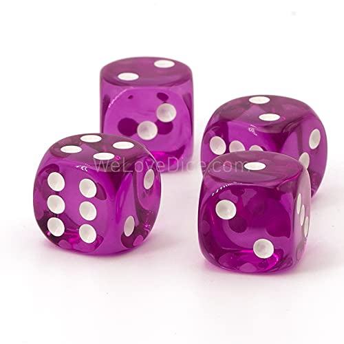 XL dadi (20 mm) transparente/bianche viola - fatto en germania - WeLoveBeads - 5 pezzi