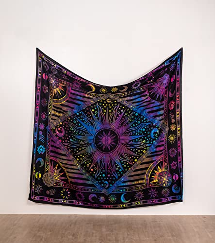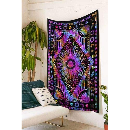 THE ART BOX Viola Mandala Hippie Sole Luna Bruciare Sole Psychedelic Trippy Arazzo - 135x210 cm Celeste Pianeta da Parete Bohémien Arazzi