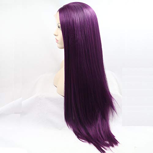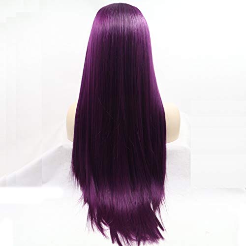 61 cm lungo viola viola Silky straight synthetic Lace Front Wigs 180% Density divisione centrale Half Hand Tied Heat Resistant Fiber Hair per donna