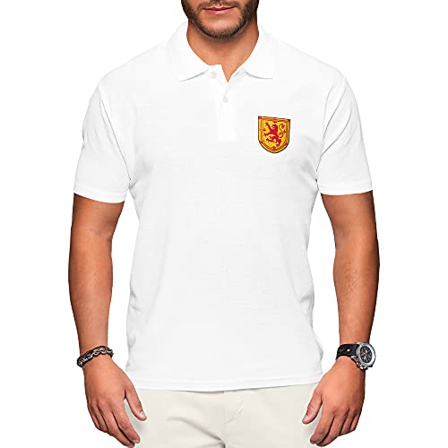 Polo con logo della bandiera del leone della Scozia, stile retrò, con colletto a bottone, uomo, uomo, uomo