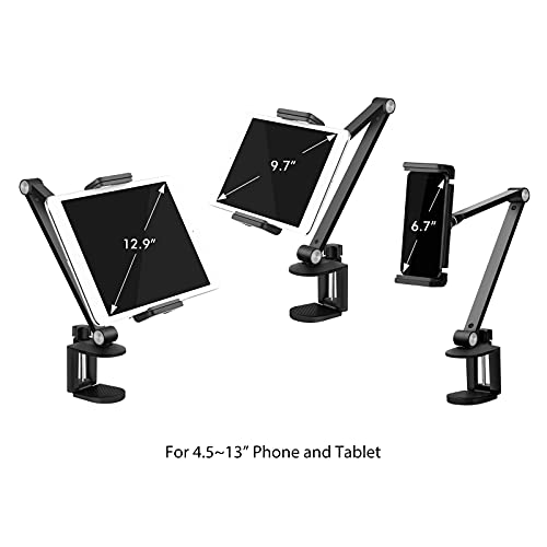 Compatibilità: questo supporto per tablet in alluminio è compatibile con telefoni cellulari e tablet da 4,5-13 pollici, come iPhone 11, Samsung Galaxy, iPad 1/2/3/4, superficie, Surface Pro, iPad Pro 12.9/9.7 e così via. Nota: se si utilizza iPad Pro e altri dispositivi pesanti, è necessario regolare le viti laterali per aumentare la forza portante del braccio. Attenzione: fare attenzione quando si utilizza con una copertura.