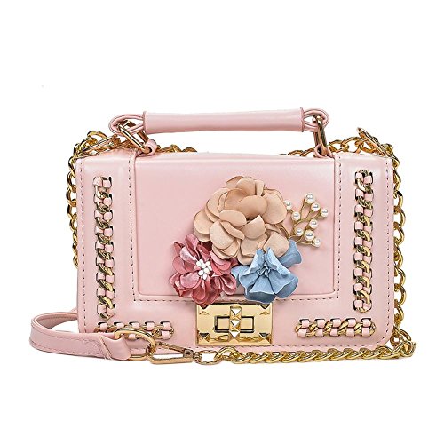 Vipeco donne mini perline fiori PU borsetta Designers catena spalla Crossbody borse, Pink, 200.00*130.00*70.00mm