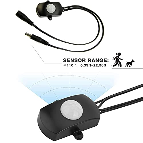 VIPMOON DC 5 V-24 V Mini PIR corpo sensore di movimento a infrarossi striscia LED Interruttore Automatico, nero, 12.00 voltsV