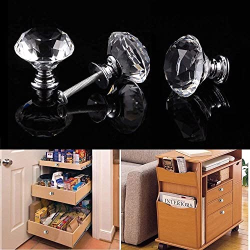 VIPMOON 6 Pezzi Pomelli per Mobili 30mm Pomelli per Porte in Vetro Cristallo Maniglie per Cassetti con Viti Pomelli in Cristallo per Porte, Armadietti, Cassetti