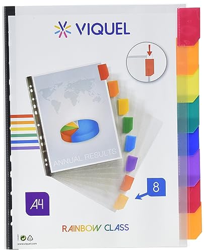 Viquel - Set di 8 divisori personalizzabili formato A4 MAXI - RAINBOW CLASS - linguette personalizzabili
