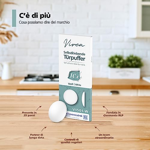 Virea 10 x Fermaporta 40 x 8 mm Bianco - Paracolpi autoadesivi per porte - Paracolpi elastici per pareti - Per proteggere pareti e mobili - Paracolpi per la maniglia della porta