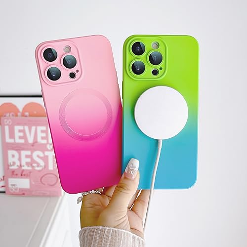 VirgoCCY Custodia per iPhone 13 Pro Max, iPhone 13 Pro Max Magnetic Case [Compatibile con MagSafe] Protezione Gradiente Di Colore Antiurto Donna Ragazza Cover per iPhone 13 Pro Max, Verde Blu