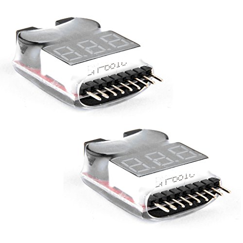 Virhuck 2 Pezzi lipo Batterie Buzzer Tensione Voltaggio d'alarme Suspensione Versa 1-8S,Tester Voltmetro della Batteria per Drone da Corsa/Fuori-Strada/Telecomando Elicottero/Multicottero Lipo Tester