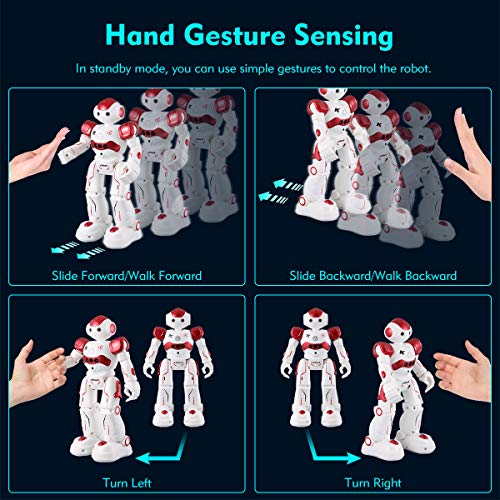 Virhuck R2 Robot Telecomandato per Bambini, Robot Giocattolo, RC Robot Programmazione Intelligente e Gesture Sensore, Danza Cantare Camminare, 500 mAh, Ricarica USB, Rosso