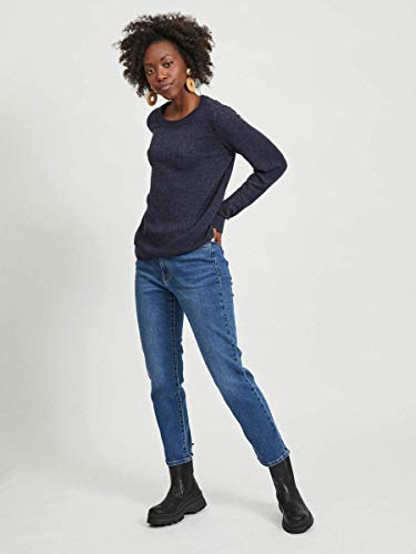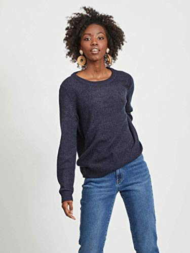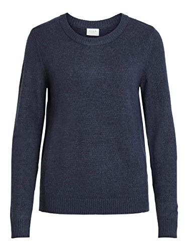 Vila NOS Viril L/s O-Neck Knit Top-Noos Felpa, Blu (Total Eclipse Detail: Melange), Large Donna