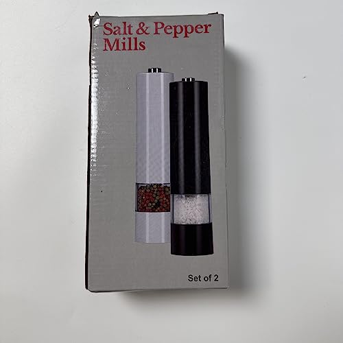 Virklyee Macinapepe Elettrico Macina 2PCS Macina Sale Set macina Pepe in Acciaio Inossidabile Macinatura Regolabile per Sale, Pepe, Spezie Macina sale a grossolanità regolabile (Nero&Bianco)