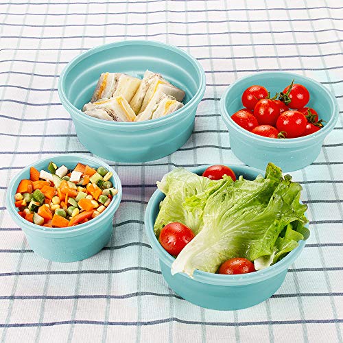 Contenitori per alimenti set: 4 contenitori pieghevoli di diverse dimensioni, 12,5 x 6,5CM (350ML), 14,5 x 6,5CM(500ML), 16,5 x 7CM (800ML), 18,5 x 7,5CM (1200ML).