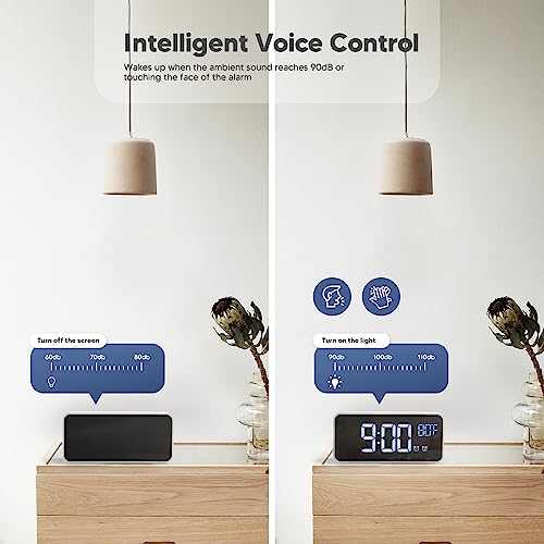 ⏰ Livello 3 Volume + Livello 4 Luminosità: Diverse opzioni di volume e luminosità sono disponibili per la regolazione gratuita e facile. La funzione di rilevamento intelligente del controllo del suono si accende automaticamente per 6 secondi quando il volume supera i 90 decibel. La sveglia entrerà quindi nella modalità di spegnimento automatico LED e non entrerà nella modalità di spegnimento automatico LED durante la ricarica.