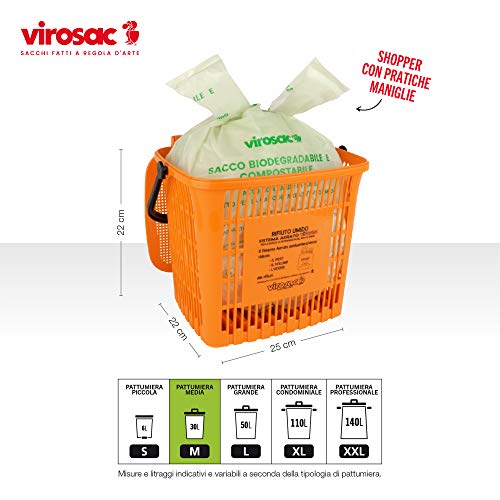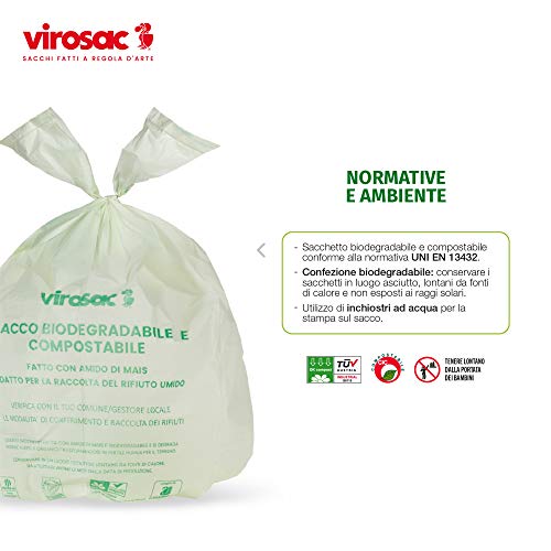 VIROSAC Sacchetti Per Rifiuti Biodegradabili Con Bretelle Color Neutro 90 Gr