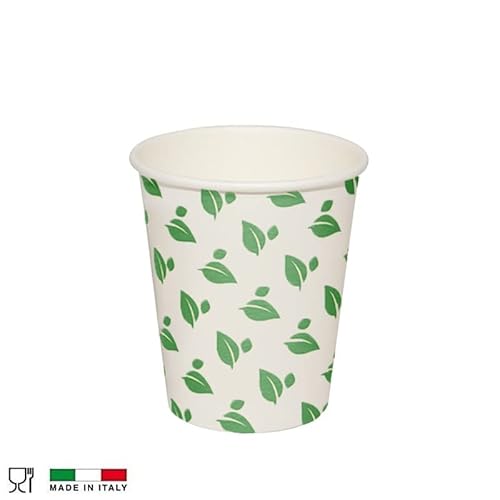 Virsus 250pz (5cf da 50pz) Bicchieri in Carta per Acqua 200ml Colore Bianco con Grafica FOGLIE, bicchiere biodegradabili in cartoncino
