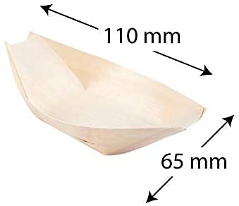 ✅ RICEVERAI: 100 pezzi di barchette monouso in polpa di legno 11x6,5 cm di pino dal design semplice e originale ideali per l'esposizione di finger food nei buffet delle cerimonie e degli eventi speciali;