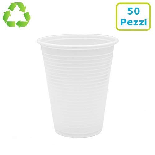 ✅ RICEVERAI - 50 bicchieri biodegradabili e compostabili, in 1 confezione, di colore bianco, con capacità pari a 200 ml, diametro superiore di 7 cm, diametro inferiore di 4,1 cm ed altezza del bicchiere di 8,4, ideali per il consumo di acqua e di varie bevande sia fredde che calde.