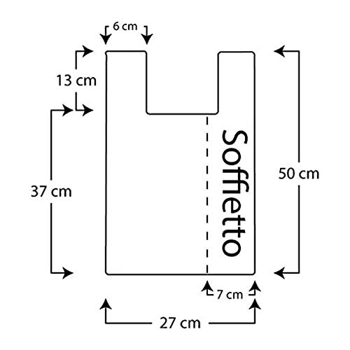 ✅ RICEVERAI - 500 buste shopper con formato 27+7+7x50cm. Ogni busta ha un peso di 6 grammi e sono fornite in comode scatole da 500 pezzi cadauna. Sono l'ideale sia per il trasporto della spesa sia per la raccolta dei rifiuti organici