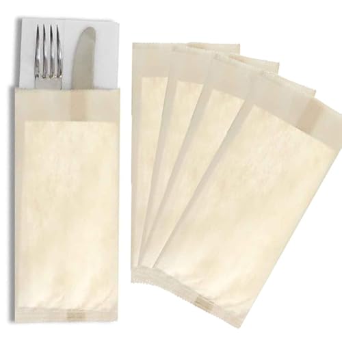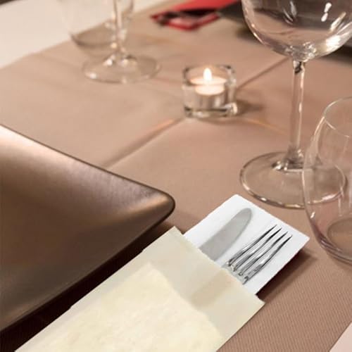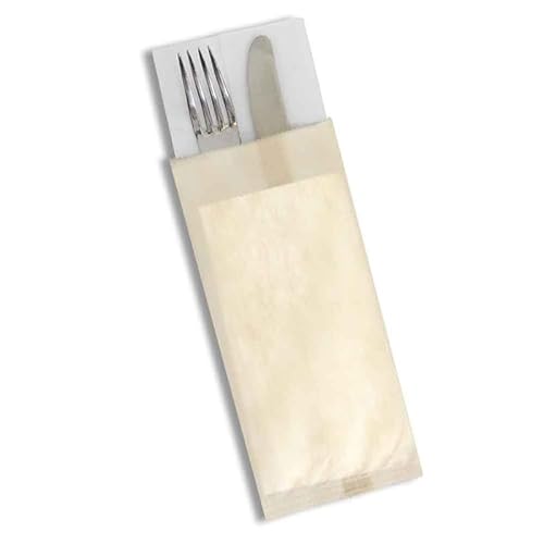 ✅ RICEVERAI - 100 buste porta posate in TNT di colore Avorio in 2 Confezioni da 50 pezzi cadauna, misura 11x25 cm, ideali per l'inserimento delle posate e con già all'interno un tovagliolo doppio velo con misura 38x38, ideali sia per un uso professionale che casalingo. Posate non incluse.