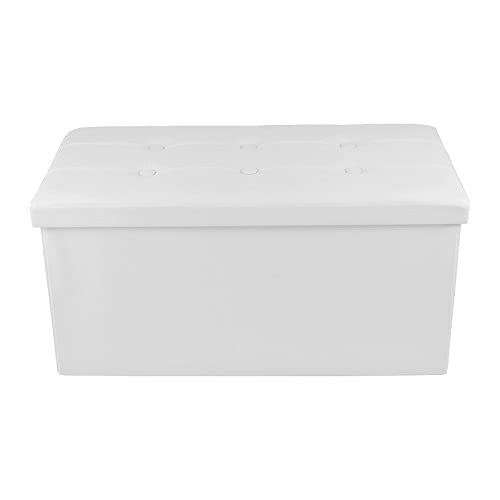 VIRSUS 1 Pouf Cassapanca Poggiapiedi con seduta imbottita, dimensioni 80x40x40 contenitore grande, Panca Sgabello arredo casa in similpelle Vari Colori (Bianco)