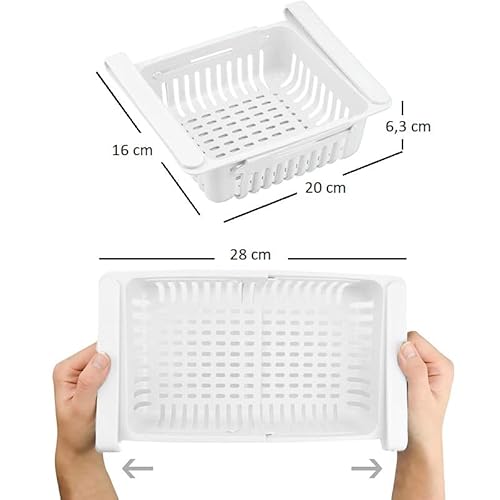 VIRSUS 4 Cesti per Frigorifero 6853, cassetto Organizer allungabile da 20cm Fino a 28cm, Contenitore Retrattile per conservare Alimenti in frigo, Cucina, dispensa (Bianco)