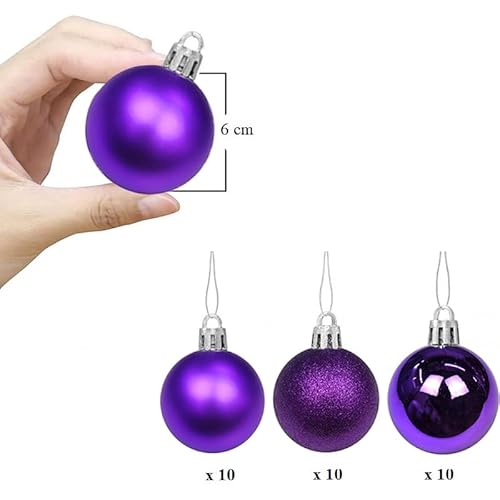 ✅ RICEVERAI - 1 Confezione di 30 Palle di Natale di colore Viola, diametro 6 cm, ideali per abbellire ed addobbare il tuo albero di natale. Il prodotto è utile anche per decorare una ghirlanda, un tavolo da pranzo o in occasione di matrimoni, fidanzamenti, compleanni e feste di anniversario.