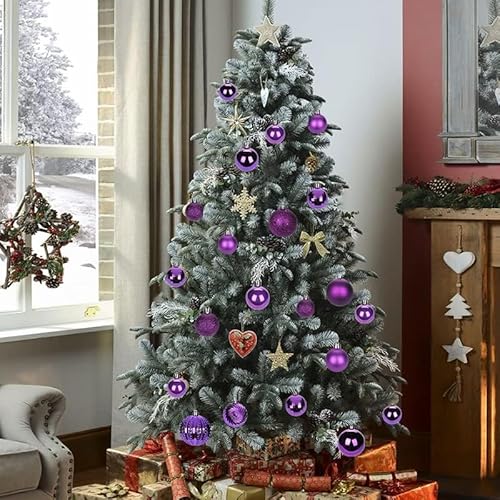 Virsus 30 Palle di Natale 59067, Diametro 6 cm, Palline in Plastica Infrangibile per Albero di Natale, Decorazioni e Addobbi Natalizi, Set di Palline Glitterate, Lucide e Opache (Viola)