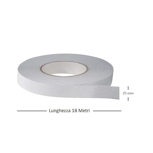 ✅ RICEVERAI - 1 rotolo di nastro autoadesivo antiscivolo, di colore Trasparente, largo 25 mm e lungo 18 Metri, ideale per tutte quelle applicazioni in cui è richiesta sicurezza. È un'ottima scelta per uso sia lavorativo che commerciale in luoghi aperti e chiusi.
