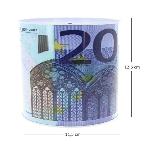 ✅ RICEVERAI - 1 salvadanaio piccolo in latta non apribile di colore Blu con grafica Banconota da 20 Euro, con misura pari a 11,5x12,5 cm, ideale per la raccolta sia di banconote che di monete.