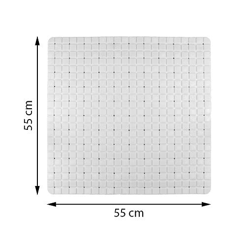 Virsus Tappeto doccia antiscivolo di colore bianco, antimuffa e antibatterico, con ventose e fori drenaggio, quadrato dimensione 55 x 55 cm, tappetino bagno doccia vasca da bagno lavabile