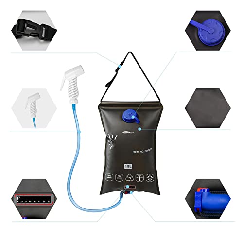 Virtcooy Borsa per Doccia Solare,4 galloni/15L Borsa d'Acqua Borsa da Doccia per Riscaldamento Solare - Accessori da Campeggio per Doccia Solare per Escursioni in Spiaggia con Zaino e Sacco