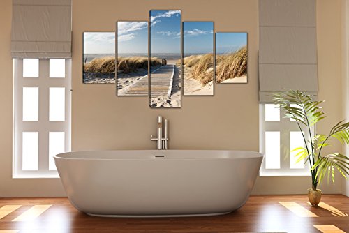 Visario 6310 - Quadro su Tela con Immagine di Spiaggia Mar Baltico Mare del Nord Dune 5 Pezzi Marca Originale, 200 x 100 cm