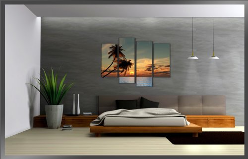 Visario Quadro su tela palm 130 x 80 cm 4 tele modello nr XXL 6144. I quadri sono montati su telai di vero legno. Stampa artistica intelaiata e pronta da appendere