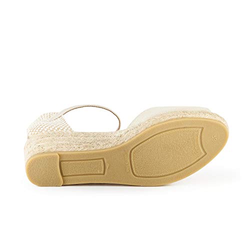 VISCATA Barcelona Fatto a Mano in Spagna Cavall Canvas 2" Zeppa, Cinturino alla Caviglia, Punta Aperta, Tacco Classico Espadrillas 36EU Beige