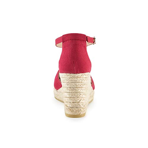 Viscata Estartit - Espadrillas da donna in tela, con zeppe da 3 ½", scarpe estive fatte a mano, eleganti e confortevoli, punta chiusa ed cinturino alla caviglia, per stile e stabilità, Ciliegia, 37 EU