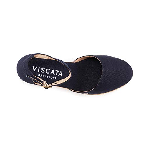 Viscata Estartit - Espadrillas eleganti, comode, in tela, cinturino alla caviglia, punta chiusa, tacco 7,62 cm, made in Spagna, navy (Navy), 40 EU