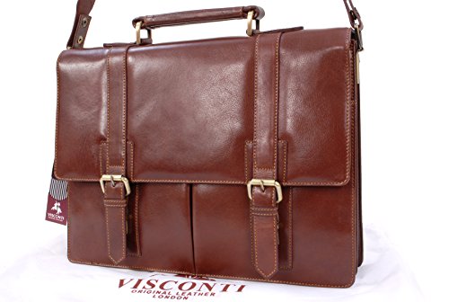 VISCONTI - Borsa portadocumenti in Vera Pelle/Borsa Messenger a Tracolla con una cinghia per Lavoro/Borsa a Spalla uomo/Borsa Valigetta - VT6 Bennet - MARRONE CHIARO