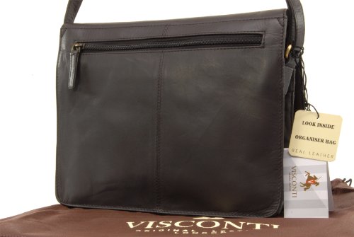 VISCONTI - Vera Pelle- Borsa organiser/Unisex/Borsa Messenger a Tracolla con una cinghia per Lavoro/iPad/Kindle/Borse a Tracolla/Borse a Spalla - 754 Tess - CIOCCOLATO