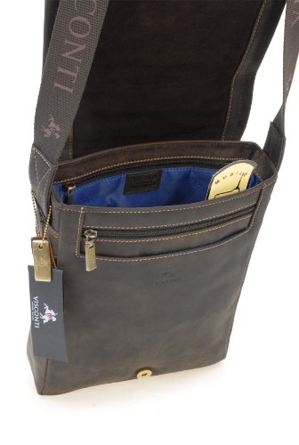 VISCONTI- Vera Pelle- Borsa a tracolla/Borsa Messenger a Tracolla con una cinghia per Lavoro/iPad/Kindle/Borse a Spalla uomo - 16081 Tommy - OLIO MARRONE