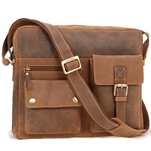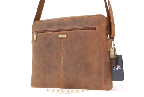 VISCONTI- Vera Pelle - Borsa a tracolla/Borsa Messenger a Tracolla con una cinghia per Lavoro/iPad/Kindle/Borse a Spalla uomo/Borse per PC portatili - 16077 Scott - OLIO MARRONE CHIARO