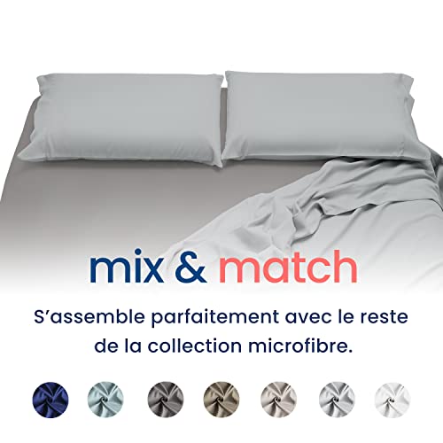 Lenzuolo con angoli da 140 x 190 cm: lenzuolo colore acciaio da 140 x 190 x 30 cm in 100% microfibra di poliestere - 100 g/m2. Consistenza «pelle di pesca» molto resistente e morbida.