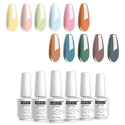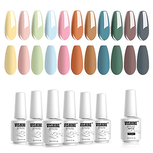 Vishine Vernis Semi Permanente 12 Bottiglie Gel Semipermanente Smalto Set Colori Macaron, con Top Coat Opaco Smalto Semipermanente Gel UV LED 8ml