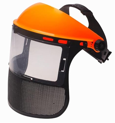 AMA Visiera combinata in rete metallica e policarbonato: Visiera protettiva decespugliatore, Regolabile, Protezione viso