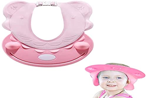 Visiera Doccia Bambini, Cappello Doccia per Bambini, Visiera Shampoo Bambini con Paraorecchie, Sicurezza Cappello da Bathing Prevenire l'Acqua Flusso Verso Occhi e Viso (Rosa)