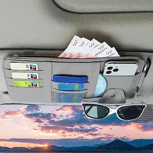 NC Visiera Parasole per Auto, Car Sun Visor Organizer, Accessori interni per auto, custodia per auto con cerniera, può contenere telefoni cellulari, carte, occhiali, contanti, ecc. (Grigio)